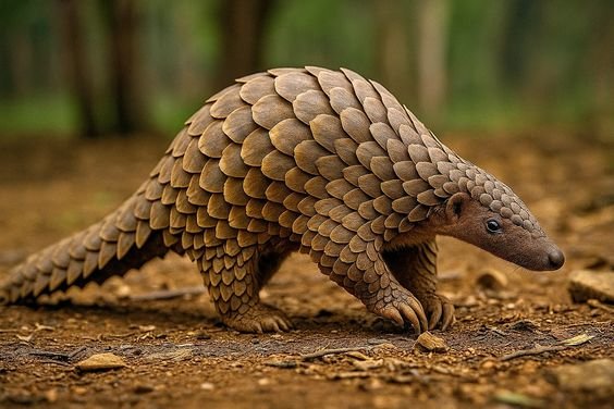 Pangolins are shy, nocturnal mammals covered in tough overlapping scales made of keratin โ€” the same material as human fingernails.